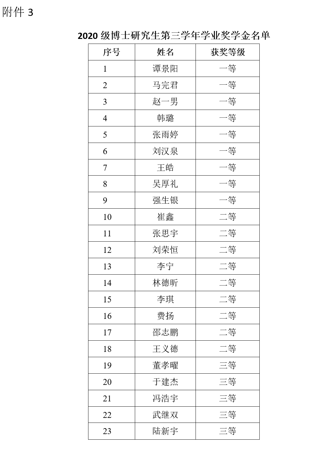 3. 2020級(jí)博士研究生第三學(xué)年學(xué)業(yè)獎(jiǎng)學(xué)金名單