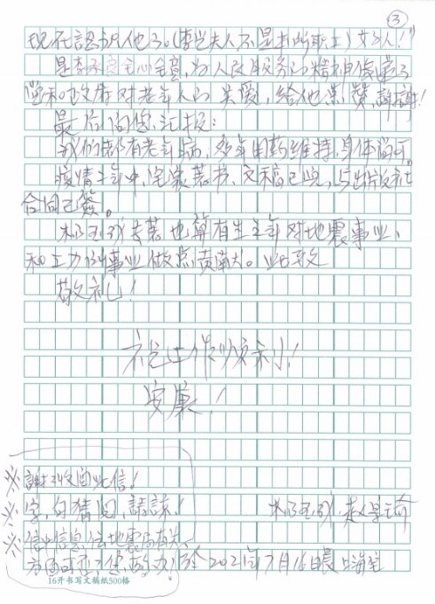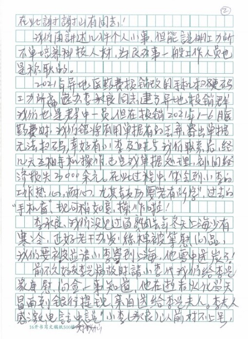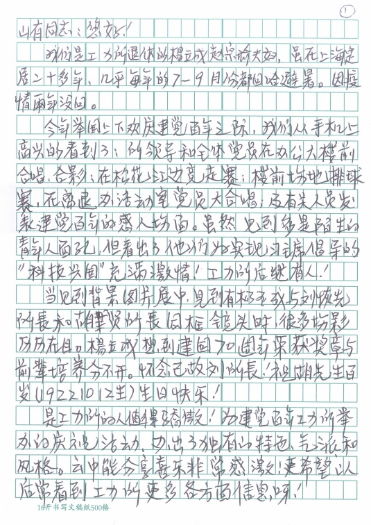 發布時間: 2021-08-20 點擊數量:3841“以人性化服務和溫情服務為宗旨,努力做到讓老同志方便、放心、滿意,感受到家人般的溫暖”,這是離退休辦公室的服務宗旨。近日,一封感謝信從遠在上海定居的老同志寄來,信里表達了對工力所在建黨百年之際取得的成績感到驕傲和自豪,重點感謝了離退辦同志對異地居住和就醫的老同志給予生活上和就醫方面的關心和幫助。他飽含感激之情地講述了幾件事,他說“我們講述幾件個人小事,但能說明工力所不單培養科技人才,為民辦事一般工作人員也是稱職的。”“全心全意為人民服務的精神傳遞了黨和政府對老年人的關愛”……老同志口中的小事都是我們為群眾服務的大事,我們要為群眾辦真事、真辦事。