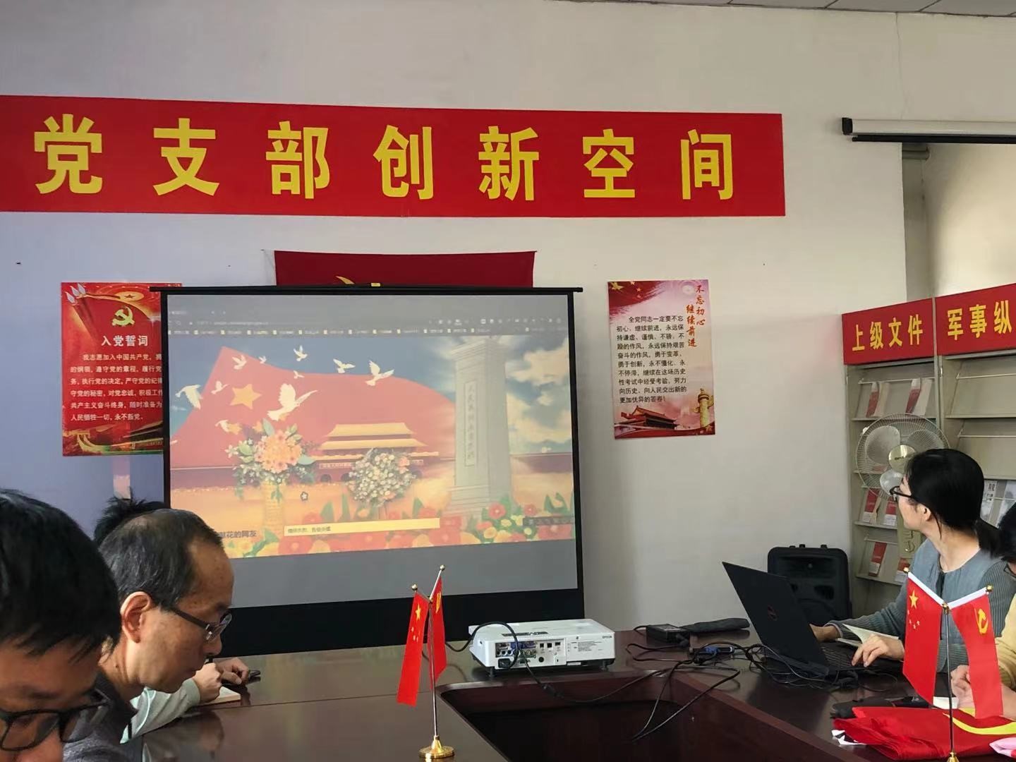 第二項:銘記歷史,緬懷先烈,敬獻花籃。敬獻花籃采取線上敬獻的形式,由一位代表全體支部成員向人民英雄紀念碑敬獻花籃。