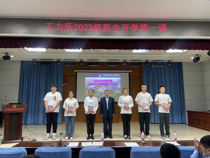 入所教育結(jié)束后,李山有講授開學(xué)第一課。他帶領(lǐng)大家重溫了劉恢先教授的科學(xué)家精神和愛國愛黨情懷,強(qiáng)調(diào)科研誠信的重要性,勉勵大家要牢記使命責(zé)任,秉承工力所“嚴(yán)謹(jǐn)、求真、博學(xué)、創(chuàng)新”的精神,學(xué)到知識、學(xué)會做人。最后,他向黨員代表贈送了《習(xí)近平的七年知青歲月》一書,鼓勵同學(xué)們成為有理想、敢擔(dān)當(dāng)、能吃苦、肯奮斗的新時代青年。
