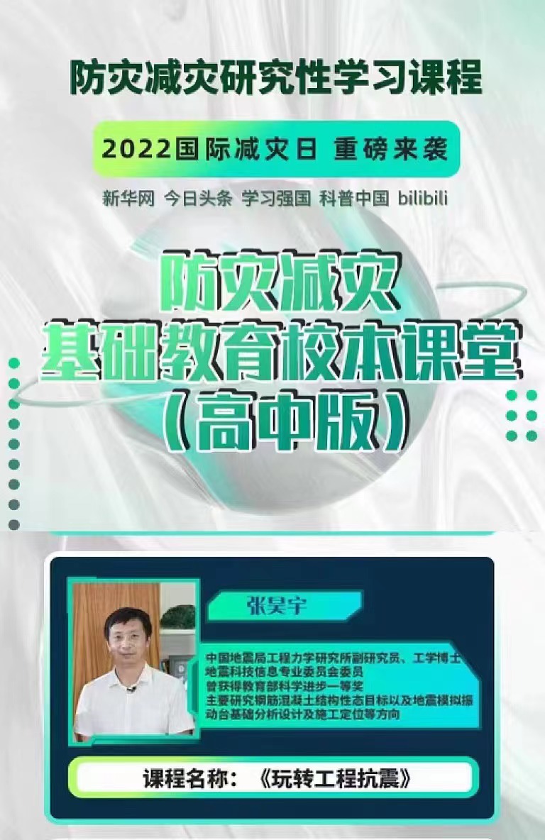 二是我所張昊宇副研究員受邀參加北京市地震局組織的“防震減災研究性學習課程”錄制, 原創科普視頻課程《玩轉工程抗震》在嗶哩嗶哩、新華網、今日頭條等平臺播出。