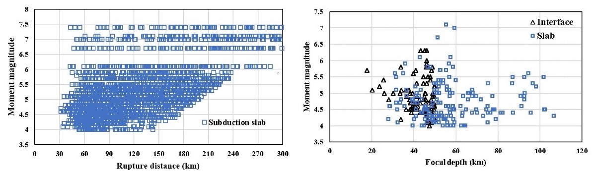 圖1 日本海溝地區海域板內地震動數據分布圖
