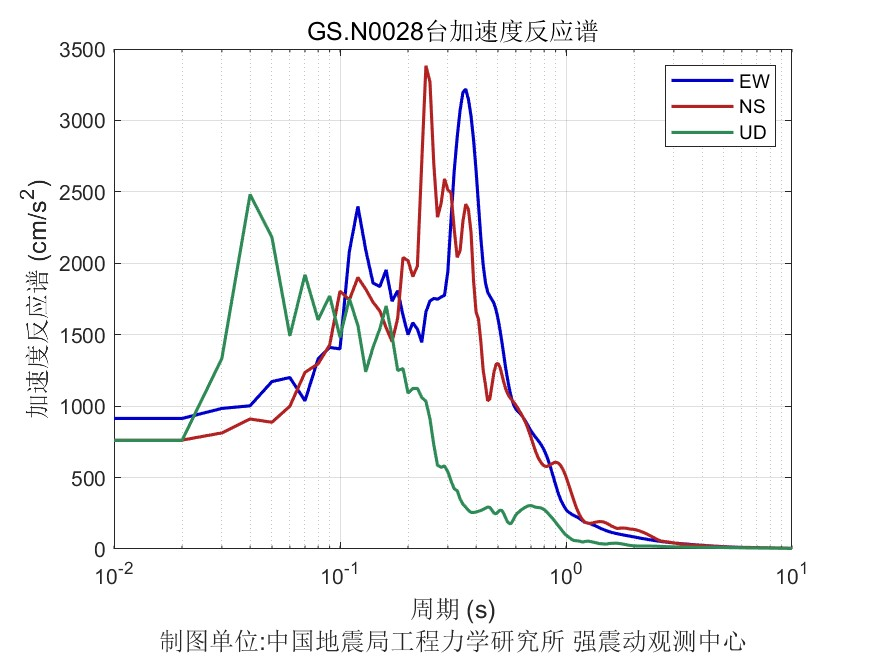 圖8 GS.N0028臺(tái)加速度反應(yīng)譜圖