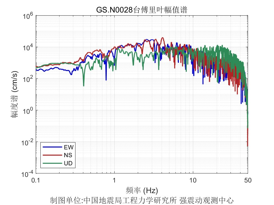 地震后工力所強(qiáng)震動(dòng)觀測(cè)中心共收取距震中100公里范圍內(nèi)實(shí)時(shí)強(qiáng)震儀記錄57組、烈度儀記錄181組。中心立即組織人員進(jìn)行處理。獲取記錄臺(tái)站加速度記錄分析結(jié)果見(jiàn)表1,其中GS.N0028 臺(tái)烈度最大,其震中距為13.6km,東西、 南北、 垂直向加速度峰值分別為 905.8cm/s2、778.5cm/ s2、-702.4cm/ s2,東西、南北、垂直向速度峰值分別為57.3cm/s、-52.1cm/s、-16.3 cm/s,計(jì)算儀器地震烈度9.5度。GS.N0027臺(tái)震中距最小,其震中距為5.8km,東西、南北、垂直向加速度峰值分別為823.9cm/s2、-533.3cm/ s2、 692.7cm/ s2,東西、南北、垂直向速度峰值分別為-39.8cm/s、-28.9cm/s、-11.3 cm/s,計(jì)算儀器地震烈度8.8度。儀器地震烈度分布圖見(jiàn)圖1,地震峰值加速度分布圖見(jiàn)圖2,地震峰值速度分布見(jiàn)圖3,地震加速度反應(yīng)譜(T=0.3s、T=1.0s、T=3.0s)分布圖見(jiàn)圖4、圖5、圖6,GD.Q0407 臺(tái)強(qiáng)震動(dòng)記錄見(jiàn)圖7,GD.Q0407臺(tái)加速度反應(yīng)譜見(jiàn)圖8,GD.Q0407臺(tái)傅里葉幅值譜見(jiàn)圖9,GD. J8501臺(tái)強(qiáng)震動(dòng)記錄見(jiàn)圖10,GD. J8501臺(tái)加速度反應(yīng)譜見(jiàn)圖11,GD. J8501臺(tái)傅里葉幅值譜見(jiàn)圖12。