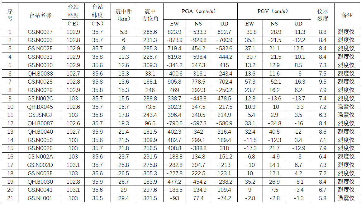 表1甘肅臨夏6.2級(jí)地震強(qiáng)震動(dòng)記錄分析