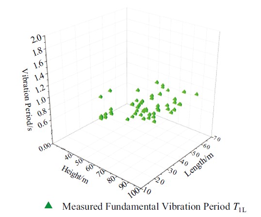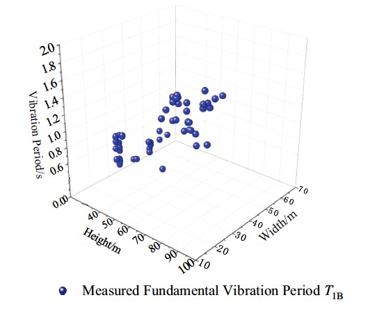 中國現(xiàn)行《建筑結(jié)構(gòu)荷載規(guī)范》 GB50009-2012附錄F中,對高層建筑的自振周期給出了經(jīng)驗公式。該公式基于1974年的《工業(yè)與民用建筑抗震設(shè)計規(guī)范(試行)》TJ 11-74和1987年的《建筑結(jié)構(gòu)荷載規(guī)范》GBJ 9-87,通過大量建筑物自振周期的實測數(shù)據(jù)對其進行了修正和補充。但是,這一時期建筑樣本的高度基本都在50m以下,僅有少量建筑的高度在50-100m。當(dāng)前中國修建了大量50m以上的建筑,而高層建筑的自振周期經(jīng)驗公式仍沿用于87規(guī)范,設(shè)計理論相比當(dāng)前工程現(xiàn)狀存在一定滯后。