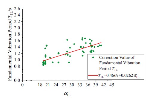 1) 將實測建筑的使用狀況分為未投入使用和已投入使用,按使用狀況對建筑自振周期的實測值進行不同系數(shù)的修正,未投入使用建筑的修正系數(shù)為1.3,已投入使用建筑的修正系數(shù)為1.17。使用該修正系數(shù)在后續(xù)擬合中取得了較為理想的效果,補充了現(xiàn)有公式擬合的經(jīng)驗;
