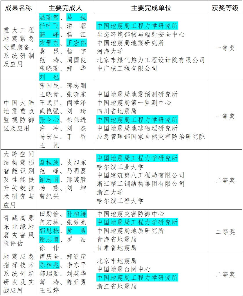 發布時間: 2025-07-17 點擊數量:6603近日,中國地震局公布了2025年度防震減災科研成果獎評選結果,我所作為牽頭單位完成的成果獲一等獎1項、二等獎1項,作為參與單位獲一等獎1項、二等獎2項。
